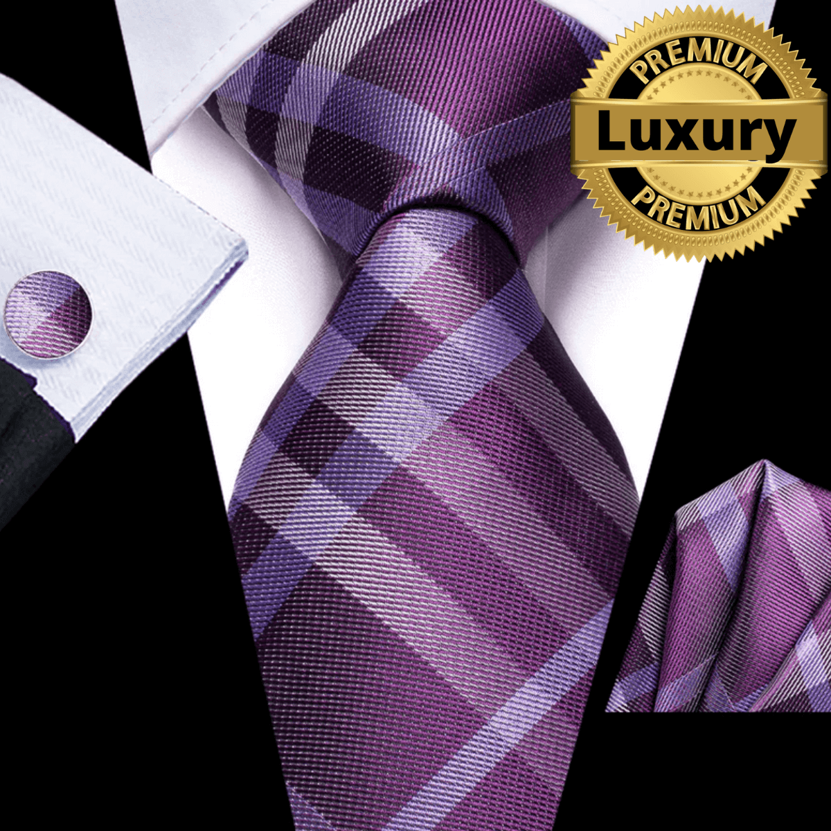 A Gravata de Seda Xadrez Roxa Executiva é confeccionada em SEDA + POLIÉSTER, material nobre, medindo 8 cm na parte mais larga da ponta e 145 cm no comprimento total. Sua estampa cria um design único e exclusivo à gravata, detalhe que acompanha as tendências da moda.