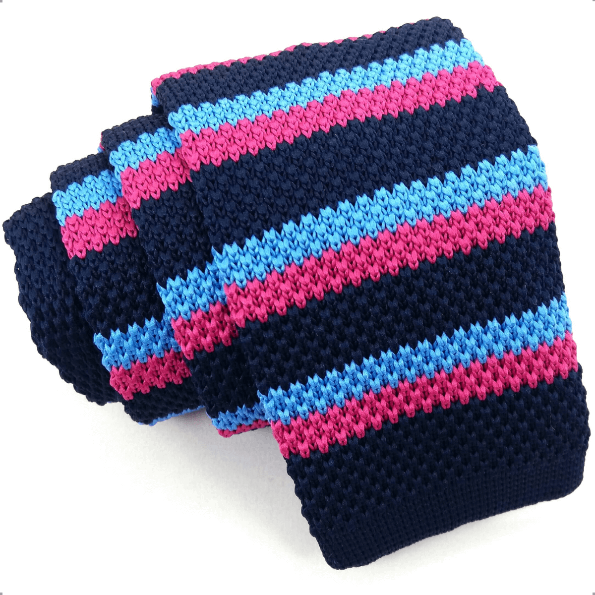 SOBRE GRAVATA SLIM CROCHÊ TRICÔ AZUL MARINHO LISTRADA